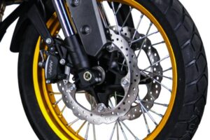 Ön tarafta 19 inç, arka tarafta 17 inç ebatlarında, tubeless (iç lastiksiz) çapraz kollu jantlar ve Metzeler Tourance karma arazi lastikleri.